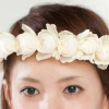 白のスプレーバラにて細めの花冠に